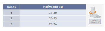 Confeccionada en tejido elástico de punto transpirable sin costuras, lo que evita rozamientos molestos. Dispositivo muy resistente y suave ofreciendo un mayor confort, así como un ajuste anatómico en 3D; incorpora almohadillas visco-elásticas que redistribuyen la compresión del vendaje desde los maléolos prominentes hacia las partes blandas de alrededor